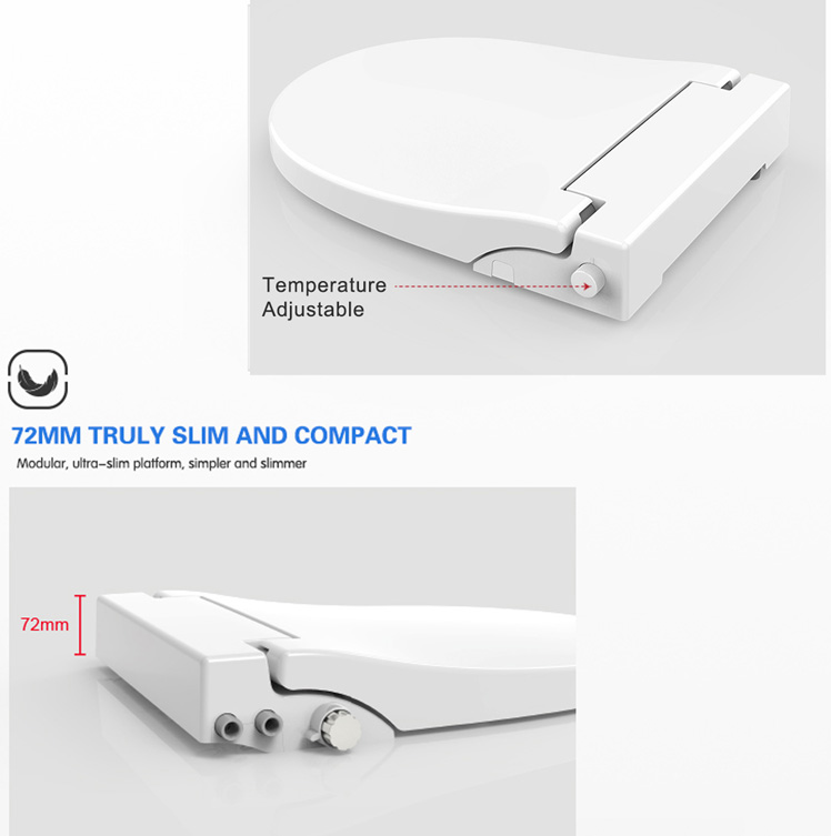 Assento sanitário com bidê não elétrico, compatível com vasos sanitários alongados.