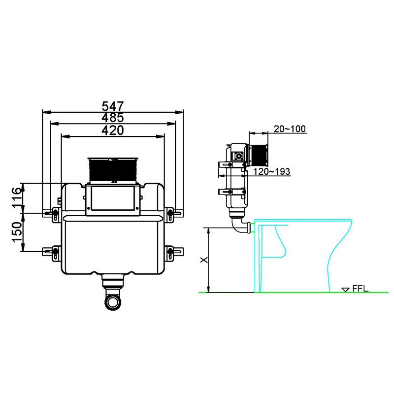 | Recurso: | Tanque oculto, descarga dupla |